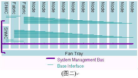 I2C總線使用100Khz時(shí)鐘和3.3V信號(hào)。ATCA規(guī)范制定要求2個(gè)IPMB總線,分別冠以IPMB-A和IPMB-B,兩條總線合一稱之為IPMB-0。IPMB可以以雙總線或雙星型配置方式實(shí)現(xiàn)。之所以要求雙IPMB總線是為了保證系統(tǒng)管理子系統(tǒng)的可靠性。IPMB總線被用作聯(lián)接ShMC與ATCA單板和ATCA機(jī)架中FRUs的橋梁。雙IPMB總線可同時(shí)被使用以加倍傳輸頻寬,但設(shè)計(jì)者必須考慮萬(wàn)一其中一條IPMB總線失靈所帶來(lái)的沖擊。典型的ATCA背板上系統(tǒng)管理間的互聯(lián)如下圖所示,在背板上有兩個(gè)ShMC槽位,兩個(gè)交換槽位,11個(gè)節(jié)點(diǎn)槽位和1個(gè)風(fēng)扇的連接。值得說(shuō)明的是管理總線與所有的節(jié)點(diǎn)槽、交換槽通過(guò)一對(duì)雙備援的ShMC聯(lián)接。