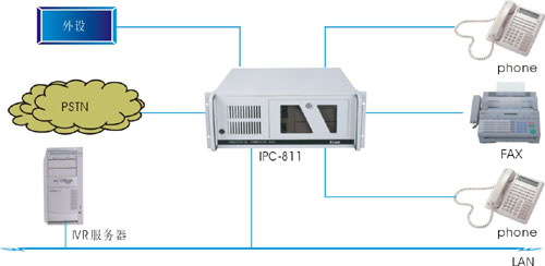 一家專業(yè)的 CTI 公司采用 "EVOC"IPC-811,一款具有 14 個(gè)擴(kuò)展槽架裝的工業(yè)電腦,而不是 傳統(tǒng)的 PBX 作為其 UNPBX 解決方案的平臺(tái)來(lái)建立自己的系統(tǒng)。這種 PC-based 的 PBX 由 "EVOC"IPC-811、聲卡和 PBX 軟件組成。一個(gè) IPC-811有 48 個(gè)端口供插入語(yǔ)音卡。系統(tǒng)執(zhí)行信 息交換和語(yǔ)音處理功能,還提供電話接口。 系統(tǒng)把來(lái)自 PSTN (公共交換電話網(wǎng))的電話線與辦公 室的普通電話連接在一起。由于其開(kāi)放性、標(biāo)準(zhǔn)性和可編程性,它可以完成無(wú)人值守、語(yǔ)音郵件、 呼叫控制、呼叫追蹤及呼叫中心這些功能。