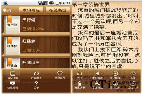 只要將捷通華聲出品的聽書軟件安裝在Android1.6以上系統(tǒng)的智能手機中,即可隨心暢讀,捷通聽書是捷通華聲人機交互(HCI)技術的創(chuàng)新之作,它運用嵌入式語音合成技術,無需人工進行預置錄音,無論什么文體,都可進行順暢的海量閱讀,這樣的海量閱讀并不會給手機的存儲空間帶來負擔,現(xiàn)在就可在官網(wǎng)中http://www.hcicloud.com/xiazai.asp?id=2&classtitle=手機伴侶&clid=3 下載捷通TTS組件,只要電子書的格式為純文本文件TXT格式,便可順利進行語音朗讀。您可以選擇男聲、女聲和寶寶聲,音質清晰可媲美真人發(fā)聲,聽書已不再成為難事。捷通聽書軟件外觀整體設計古樸典雅,仿佛真能聞到書香的氣息,這樣的視聽氛圍會立刻帶你進入到聽書的境界中。獨特的翻頁模式更具人性化的設計,讓人機交互更像真正意義上的翻頁讀書,無論是聽書,還是看書,都給人帶來美好的體驗。另外,捷通華聲的語音合成技術還可提供多種音色的備選方案,可根據(jù)用戶的需求進行選用,同時支持英語、日語、俄語、德語、意大利語等多個語種的語音合成技術,為用戶提供真正多方位的服務。近日,捷通聽書還在BTV《在線E起來》欄目中精彩亮相,節(jié)目中的多項測評使這款軟件表現(xiàn)不俗,捷通聽書軟件再次成為智能手機軟件應用中的新亮點。