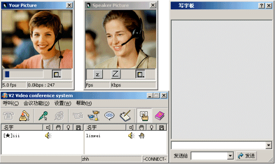 V2 Conference在企業(yè)內(nèi)的全面的實施,可以在完全取代以前的單純語音會議,實現(xiàn)視頻的會議,真正做到"千里溝通,面對面"。同時V2 Conference還可提供實時文字的交互以及共享電子白板、交換文件的功能,更符合業(yè)務交流的要求,可以想象視頻會議系統(tǒng)將前所未有地提升企業(yè)的會議效率和管理水平,為企業(yè)帶來非常可觀的直接和間接的經(jīng)濟效益。