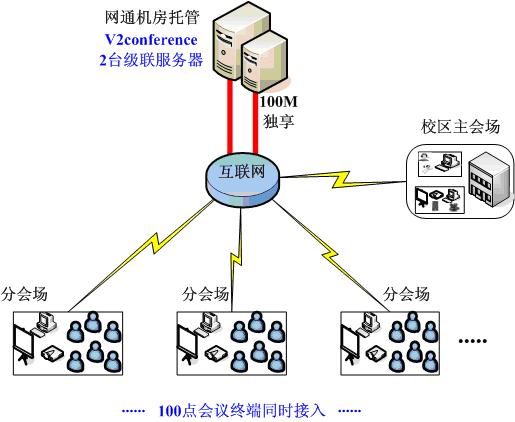 以V2 Conference為代表的純軟件視頻會議系統(tǒng)為這些應用提供了理想的解決方案。針對教育行業(yè)的應用特點,北京威速在其旗艦產品----V2 Conference視頻會議系統(tǒng)的基礎上,進行了相應的部署和規(guī)劃。從滿足應用需求和系統(tǒng)發(fā)展角度來看,V2 Conference所提供的網絡遠程教育平臺具備以下功能特點: