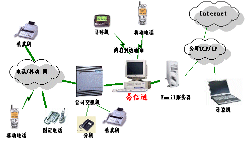 易信通可代替:語(yǔ)音信箱、自動(dòng)總機(jī)、傳真服務(wù)器。