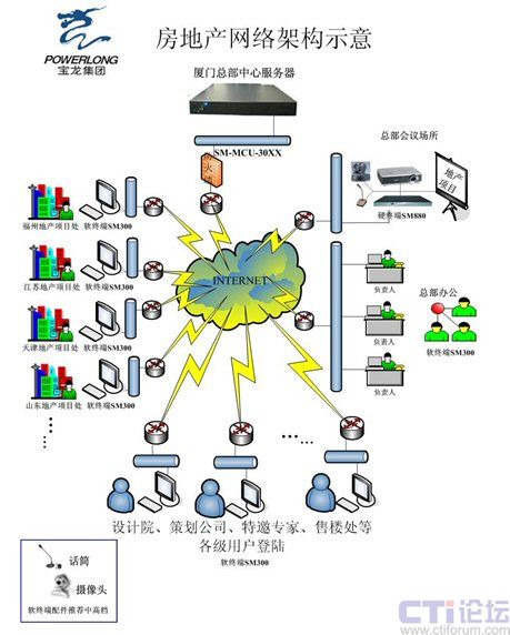寶龍集團(tuán)在業(yè)內(nèi)進(jìn)行慎重的比較和選擇。首先,該系統(tǒng)不僅能夠支持專線,而且要能兼容寬帶互聯(lián)網(wǎng)。一來專線接入費(fèi)用比較高;二來如果脫離專線網(wǎng)絡(luò),就會普遍存在帶寬不足、瞬時擁塞、高丟包率等問題,視音頻質(zhì)量很難達(dá)到令用戶滿意的水平。其次,企業(yè)要提高自己的競爭力,成本是一個重要的考慮因素。在綜合各種因素,廣泛論證之后,該公司決定選擇一套軟硬結(jié)合、能在互聯(lián)網(wǎng)上實(shí)現(xiàn)高清晰度視頻、高性價比的視頻會議系統(tǒng)。