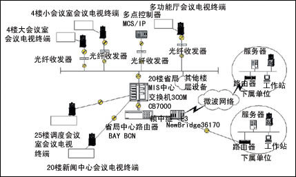 云南電力集團有限公司會議電視系統(tǒng)一期工程視頻方案基于H.323標準,以路由器連接專線(或DDN、幀中繼)為傳輸媒介,全省會議電視用戶以星形網(wǎng)絡結(jié)構(gòu)通過路由器和省調(diào)MCS/IP聯(lián)接,全網(wǎng)運行速率64kb/s--1920kb/s,分級可調(diào)。中心會場設在云南省電力局大樓內(nèi)。在省電力局采用H.323 多點會議服務器MCS/IP,可連接32個用戶,覆蓋了全省,包括昆明電力大樓、調(diào)度中心、昆明發(fā)電廠、曲靖電廠、漫灣電廠、滇西電業(yè)局、滇中電業(yè)局、滇東電業(yè)局、陽宗海電業(yè)局、昆明供電局、昆明供電局、宣威電廠,除Hub外,其他會場均通過Cisco 3810路由器接入,在路由器中運行RSVP協(xié)議。