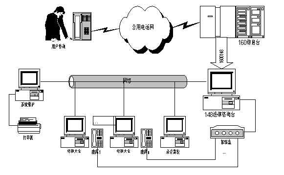 148法律咨詢臺是司法部門為廣大群眾提供的一項法律電話咨詢服務(wù)。148法律咨詢系統(tǒng)利用先進(jìn)的計算機(jī)電話語音系統(tǒng)集成技術(shù),實現(xiàn)148熱線電話在話務(wù)員處理座席上的排隊,使打入148熱線的用戶獲得最快、最好的服務(wù)。系統(tǒng)內(nèi)置自動語音服務(wù)模塊,使148法律咨詢系統(tǒng)同時具有自動語音服務(wù)和人工座席服務(wù)。
