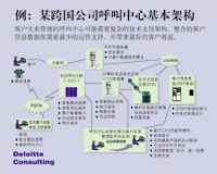 ---- 圖示是一個由德勤咨詢公司為一全球性客戶提出的呼叫中心建議,呼叫中心經(jīng)常需要這樣復(fù)雜的一個技術(shù)平臺和基礎(chǔ)支持才可能實(shí)現(xiàn)快速的來電和去電處理。