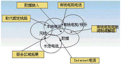 數(shù)據(jù)服務(wù)同本地電話服務(wù)的融合,是不來最重要的融合趨勢之一,其主要體現(xiàn)在通過本地電話可以解決數(shù)據(jù)業(yè)務(wù)的接入問題,可以提供窄帶或?qū)拵У慕尤肽芰。同時,可以為Internet服務(wù),如電子郵件服務(wù)同電話話音服務(wù)結(jié)合起來創(chuàng)造條件。一種未來的發(fā)展方向就是利用電話來接收電子郵件同時可以用電子郵件的方式閱讀語言信箱中的留言。“聽電子郵件,看語言信箱”是對這種融合服務(wù)的最好描述。而數(shù)據(jù)業(yè)務(wù)同長途電話業(yè)務(wù)的融合集中于通過VoIP技術(shù)提供長途電話服務(wù),競爭收入最大的電信市場。數(shù)據(jù)服務(wù)同有線電視娛樂服務(wù)的融合主要體現(xiàn)在以Cable Modem做為數(shù)據(jù)接入手段和視頻點(diǎn)播這樣的娛樂服務(wù)。通過Cable Modem,有線電視網(wǎng)也可以提供本地電話和長途電話接入業(yè)務(wù),象AT&T和TCI 及MediaOne 正在進(jìn)行的電話業(yè)務(wù)實驗。而寬帶的數(shù)據(jù)接入則為數(shù)據(jù)服務(wù)的寬帶化提供了條件。