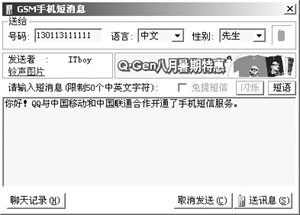目前IM與各種移動終端設備的結(jié)合也越來越多。使用QQ向手機發(fā)送短信需要手機開通移動QQ服務,單擊對方頭像圖標,在打開的快捷菜單中選擇“手機短訊”命令,在打開的對話框中輸入信息,然后點擊發(fā)送即可完成,這時對方的手機就可以收到一個消息。給BP機發(fā)短訊也是一樣,不過對方的BP機服務臺必須是QQ所支持的情況下才行。當對方的手機收到你發(fā)來的短信后還可以回復,這時候您的QQ會彈出“查看手機短訊”的窗口來,非常方便。