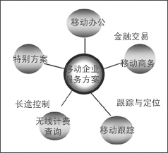KTF不僅為普通消費(fèi)者提供了許多非常吸引人的應(yīng)用, 同時(shí)也為企業(yè)設(shè)計(jì)了相關(guān)方案。如:移動(dòng)辦公是B2E市場(chǎng)中的重要應(yīng)用,是隨著無(wú)線(xiàn)技術(shù)的發(fā)展而興起的一種應(yīng)用,主要是針對(duì)公司或集團(tuán)用戶(hù)外出時(shí)仍然能通過(guò)運(yùn)營(yíng)商的無(wú)線(xiàn)網(wǎng)絡(luò)接入公司內(nèi)部網(wǎng)絡(luò)進(jìn)行工作,而不受時(shí)間,地域的限制。運(yùn)營(yíng)商可以針對(duì)集團(tuán)用戶(hù)采用特殊費(fèi)率或提供類(lèi)似于集團(tuán)內(nèi)部的縮位撥號(hào)等功能。目前在CDMA網(wǎng)上可用VPN,將來(lái)配合CDMA