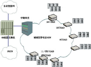 如圖4所示,該公司采用中興ZTE Softswitch系統(tǒng)部署了城域?qū)拵щ娫捪到y(tǒng),在城域網(wǎng)內(nèi)通過VPN組網(wǎng),各辦公地電話機通過多口IAD接入寬帶電話網(wǎng)絡(luò),通過在ZTE