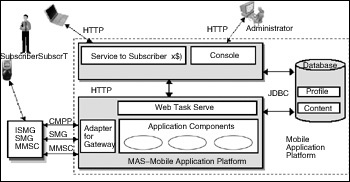 ·移動應(yīng)用系統(tǒng)(MAS)。幾乎所有的移動應(yīng)用都由MAS完成。MAS最主要的接口是與不同移動運(yùn)營商網(wǎng)關(guān)的連接,被定義為網(wǎng)關(guān)適配器(Adapter