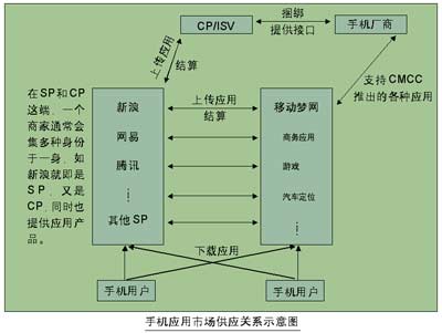在這樣一個(gè)全新的銷售模式下,運(yùn)營(yíng)商的作用也越發(fā)凸顯出來(lái)!皦(mèng)網(wǎng)是一個(gè)大的平臺(tái),SP是個(gè)小平臺(tái),SP再通過(guò)與CP建立合作,進(jìn)而將整個(gè)應(yīng)用市場(chǎng)與終端連接起來(lái),F(xiàn)在,我們?nèi)康膽?yīng)用都放到夢(mèng)網(wǎng)上面了。”北京報(bào)童電子商務(wù)公司的一個(gè)工作人員說(shuō)。移動(dòng)夢(mèng)網(wǎng)的建立,事實(shí)上在手機(jī)廠商、應(yīng)用開(kāi)發(fā)商、用戶三者之間搭了一個(gè)橋梁,將各種手機(jī)應(yīng)用集中在一個(gè)門戶網(wǎng)站,用戶需要時(shí),只需登陸到夢(mèng)網(wǎng)上面,點(diǎn)擊相關(guān)的網(wǎng)頁(yè),就可隨時(shí)下載所需要的應(yīng)用。
