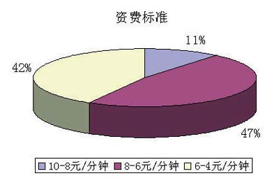 在調(diào)查中,67.4%的用戶對現(xiàn)有中國電信的資費標準(10元/分鐘)表示不滿,32.6%的用戶表示滿意。但同時58%的用戶對能接受的資費標準上又選擇了居中和較高的資費標準,表明用戶對視訊應(yīng)用產(chǎn)品的價格承受能力較高。