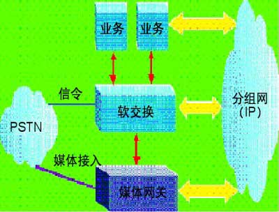 業(yè)界提出了一種設想,即把傳統(tǒng)的交換設備部件化,分為呼叫控制與媒體處理。呼叫控制實際上是運行在通用硬件平臺上的軟件,而媒體處理則把TDM信號轉換為基于IP的媒體流,二者之間采用標準協(xié)議鏈接,軟交換(SoftSwitch)由此誕生。由于軟交換技術具有擴充性強、接口標準化、