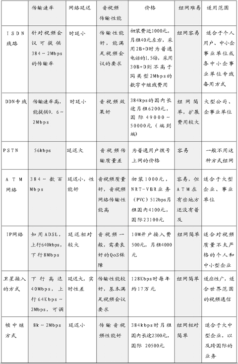 對于普通的個人用戶,如果想嘗試一下視頻會議的感受可以試一試PSTN接入。PSTN公共電話網(wǎng)是目前使用最廣泛的網(wǎng)絡(luò)系統(tǒng),它的優(yōu)點是覆蓋區(qū)域廣、易于使用、價格較低,聯(lián)網(wǎng)容易。但網(wǎng)絡(luò)速度僅能提供到56kbps,線路質(zhì)量較差,傳輸速率較低。對于視頻會議的聲音圖像傳輸遠遠不夠,基于軟件的視頻會議系統(tǒng)能達到4f/s的圖像傳輸速率,其最大的缺點是圖像質(zhì)量太差,會大大影響會議的質(zhì)量,一般用得很少。