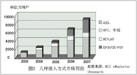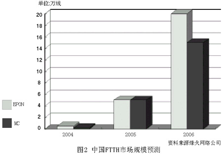 2004年初,中國(guó)ADSL用戶已增至1915萬(wàn)戶,年內(nèi)將突破2000萬(wàn)大關(guān)。正當(dāng)ADSL大行其道時(shí),運(yùn)營(yíng)商已經(jīng)入手,開(kāi)始試用部分FTTH產(chǎn)品。