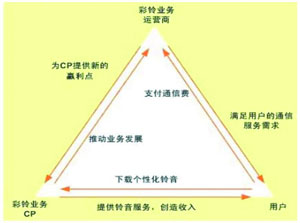 如今,韓國的彩鈴業(yè)務(wù)已遍地開花,超過50%的手機用戶在使用彩鈴服務(wù),運營商因此每月能獲得1500萬美元的收益。小彩鈴喚來了大市場。個人用戶無需購買昂貴的終端就可通過彩鈴業(yè)務(wù)向外界傳遞個性和情感。商業(yè)用戶將回鈴音設(shè)置成廣告/宣傳語,使客戶在與企業(yè)員工交流的同時接收企業(yè)的相關(guān)信息,例如企業(yè)文化、產(chǎn)品、銷售信息等,直接或間接地增加了企業(yè)的市場機會。彩鈴業(yè)務(wù)為運營商帶來了直接的經(jīng)濟收益,也帶來了特征用戶群,在語音增值業(yè)務(wù)中實現(xiàn)了產(chǎn)業(yè)鏈合作。同時,運營商通過對特征用戶群的研究分析發(fā)現(xiàn)了未來商機,并通過在語音增值業(yè)務(wù)產(chǎn)業(yè)鏈中引入ICP/ISP達到了資源的有效利用。