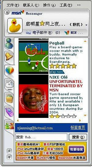 3) 拼接代替加強,F(xiàn)有應用的簡單決定了IM軟件本身的簡單,因此IM本身變得不受關注,廠商所作的大多是功能拼接,例如MSN加強聯(lián)網游戲,QQ傍上移動。甚至可以認為,IM本身已經被置于次要位置。