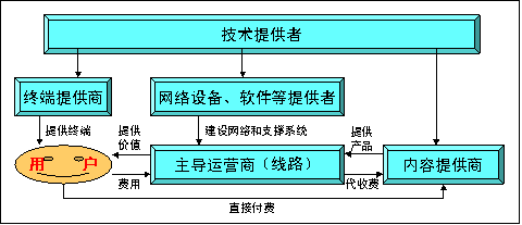 IPTV核心技術(shù)擁有者是整個(gè)系統(tǒng)的技術(shù)提供者,收取專利費(fèi)和使用費(fèi)等。