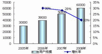 諾盛觀點(diǎn):預(yù)計2006年移動增值業(yè)務(wù)用戶規(guī)模和市場規(guī)模將分別達(dá)到3億和300億,年增長率分別為30%和36%,且未來幾年都將保持高速增長;