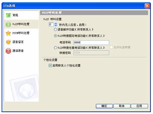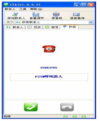 現(xiàn)在你的安裝工作已經完成了,如果有 Skype客戶撥打ITA-Demo就會聽到“歡迎致電某某公司,產品咨詢請撥15,產品訂購請撥16,人工服務請撥0”的語音提示(在交換機上設定的語音)。