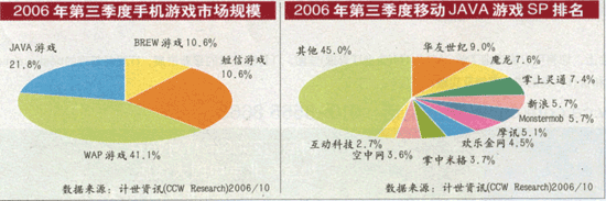 目前,中國手機(jī)用戶已經(jīng)突破4億。今年10月,計(jì)世資訊發(fā)布的調(diào)查報(bào)告說,2006年,中國手機(jī)游戲市場規(guī)模將超過18億元人民幣;稍早些時(shí)候,易觀國際的調(diào)查報(bào)告則顯示,今年中國的手機(jī)游戲市場規(guī)模接近22億元人民幣,到2008年時(shí)將超過60億元人民幣。在全球,手機(jī)游戲市場以每年超過40%的速度增長,已經(jīng)超過音樂和其他無線增值服務(wù),成為未來無線增值服務(wù)的明星業(yè)務(wù)。