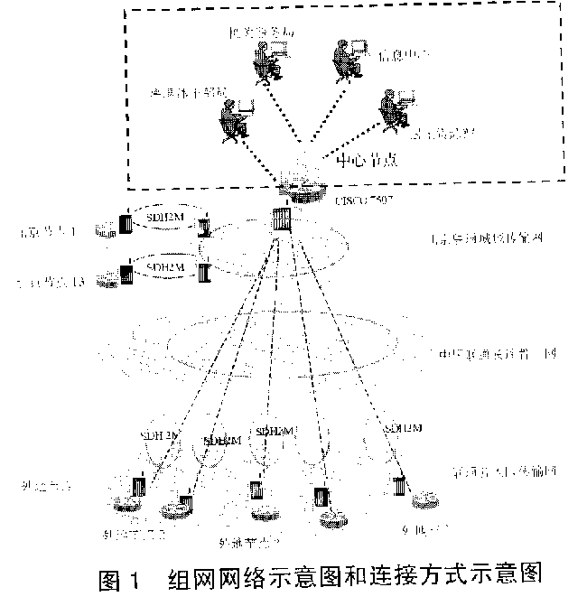 具體接入方式是通過中國(guó)聯(lián)通的光纖接入資源,實(shí)現(xiàn)國(guó)土資源部全國(guó)SDH電路的端到端光纖連接。在北京國(guó)土資源部中心節(jié)點(diǎn)引入中國(guó)聯(lián)通光傳輸電路,與聯(lián)通北京城域網(wǎng)相連,采用華為622H光傳輸系統(tǒng)設(shè)備的STM一1模塊提供155M光接口,與國(guó)土資源部的骨干路由器信道化155M接口相連,由路由器內(nèi)部完成155M到2M的拆分,從而實(shí)現(xiàn)國(guó)土資源部和其他節(jié)點(diǎn)2M電路的互連,除可支持目前所需的50個(gè)2M數(shù)字電路的廣域組網(wǎng)(最大支持63個(gè)2MB數(shù)字電路的廣域網(wǎng)).同時(shí)可滿足其將來擴(kuò)容需求,提供多個(gè)l55M接口。其組網(wǎng)網(wǎng)絡(luò)示意圖和連接方式如圖1。