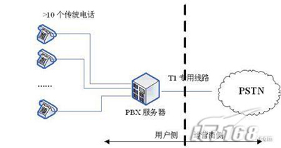 相反,在傳統(tǒng)的PBX或新興的IP-PBX中,這些功能模塊通常配置在用戶側(cè)的網(wǎng)絡(luò)元素上,而且通過一條或多條專用線路T1(傳統(tǒng)PBX)或DSL(新興PBX)連接到中心辦公室,用PSTN的連接。圖1說明了PBX和Centrex服務(wù)的區(qū)別。而且,DSL還能在相同的鏈路支持語音和數(shù)據(jù)的傳輸,而且維護鏈路的成本也遠遠小于維護T1所需的代價。另外,由于呼叫控制能夠在本地裝載,而IP-PBX能夠支持Internet連接,因此每23(T1-PRI)或24(T1-CAS)個電話終端就不再需要一條專用線路T1的支持了。(后續(xù)將進一步說明)