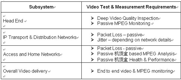 圖2總結(jié)了IPTV網(wǎng)絡(luò)中每個子系統(tǒng)相關(guān)的測試和管理需求。