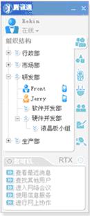 RTX的互聯(lián)功能:企業(yè)分支機(jī)構(gòu)互聯(lián);RTX企業(yè)互聯(lián),RTX用戶(hù)可以與其他RTX企業(yè)用戶(hù)互通;與普通QQ用戶(hù)互連。