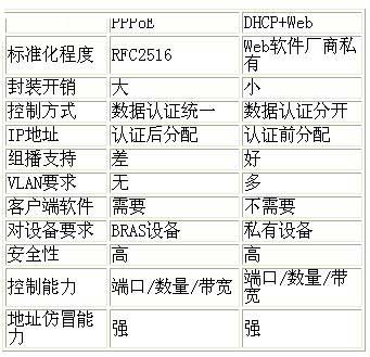 當前在寬帶網中使用的最主要認證技術包括兩類,即PPPoE和DHCP(或者DHCP+Web)技術。