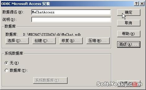 為使Mechat系統(tǒng)具有較高的運(yùn)行效率,我們將其添加數(shù)據(jù)庫支持,單擊“開始”/“設(shè)置”/“控制面板”,選擇“治理工具”/“數(shù)據(jù)源(ODBC)”,切換至“系統(tǒng)DSN”,單擊“添加”按鈕啟動ODBC數(shù)據(jù)源添加向?qū),選擇“MicrosoftAccessDriver(*、mdb)”,然后在DSN屬性設(shè)置窗口設(shè)置數(shù)據(jù)源名稱為“MeChatAccess”,選擇數(shù)據(jù)庫文件為D:\MeChat\SysData\db目錄下的MeChat、mdb(如圖23)。設(shè)置完畢,單擊“確定”退出。