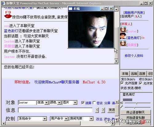 MeChat是由廣州和韻計算機(jī)有限公司開發(fā)的視頻聊天服務(wù)器。(點這里下載)與一般的采用ASP或CGI的語音聊天室不同,Mechat內(nèi)核由C