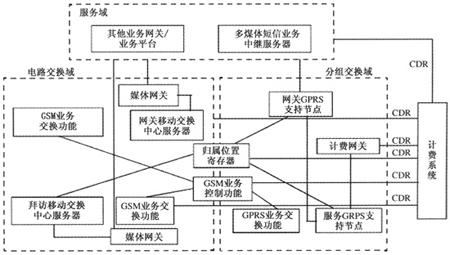 主要實(shí)現(xiàn)各類數(shù)據(jù)增值業(yè)務(wù),例如WAP業(yè)務(wù)、互聯(lián)網(wǎng)短信業(yè)務(wù)、位置應(yīng)用業(yè)務(wù)等。業(yè)務(wù)域由各業(yè)務(wù)網(wǎng)關(guān)/業(yè)務(wù)平臺產(chǎn)生CDR后,發(fā)送給計(jì)費(fèi)系統(tǒng)作后續(xù)處理。例如,多媒體信息服務(wù)(MMS)的CDR由MMS