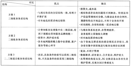 3G計(jì)費(fèi)賬務(wù)體系結(jié)構(gòu)主要分為三級賬務(wù)體系結(jié)構(gòu)、二級賬務(wù)體系結(jié)構(gòu)和二、三級混合賬務(wù)體系結(jié)構(gòu)等幾種方式。各種賬務(wù)體系結(jié)構(gòu)對比見表1。