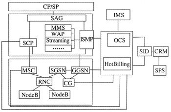 通過上述分析可見,采用升級改造現(xiàn)有計(jì)費(fèi)系統(tǒng)進(jìn)而建設(shè)3G融合計(jì)費(fèi)系統(tǒng)的方案是比較恰當(dāng)?shù)倪x擇。目前認(rèn)可度較高的3G融合計(jì)費(fèi)解決方案體系架構(gòu)如圖3所示。