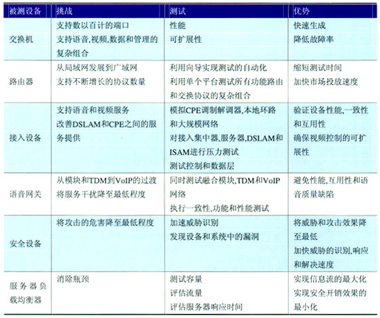 此外,思博倫還可以提供安全風險管理解決方案。服務商和網(wǎng)絡設(shè)備制造商可以生成真實的流量,并將其引入網(wǎng)絡中,然后監(jiān)視各種“惡意代碼”對單個設(shè)備和總體網(wǎng)絡性能造成的影響,從而對網(wǎng)絡和設(shè)備中可能存在的漏洞進行周全的測試。表1為思博倫基礎(chǔ)設(shè)施測試的挑戰(zhàn)和優(yōu)勢。