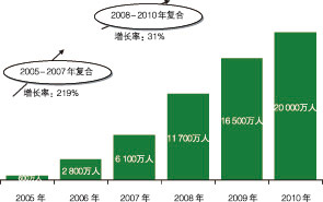 圖4 2005-2010年中國無線搜索用戶數(shù)量變化情況