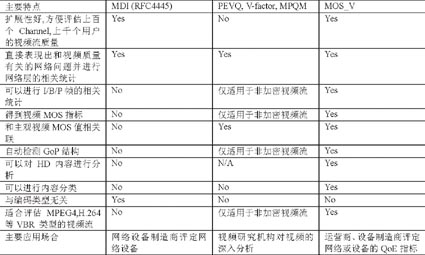 Reference)質(zhì)量評定。幾種評定方面的簡單比較如表1所示,相應(yīng)指標的介紹可以參考《電信網(wǎng)技術(shù)》2007年第12期的《IPTV