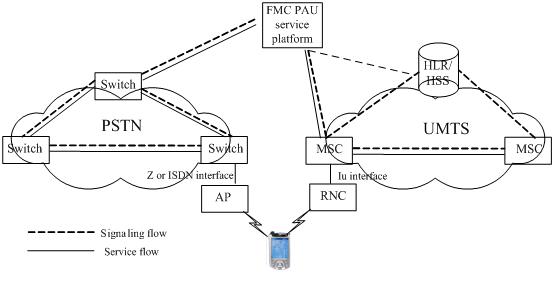 在FMC-PAU中,移動終端屬于雙模或多模終端,用戶使用該終端既可以接入到3G移動網(wǎng),也可以采用無線方式通過接入節(jié)點(AP)接入到PSTN網(wǎng)絡中。
