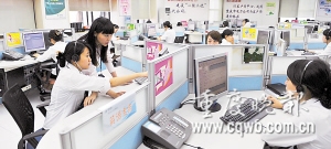 15日,重慶市電力公司客戶(hù)服務(wù)中心95598熱線大廳,仍然是一片繁忙:帶著耳麥的接線員一邊和用戶(hù)對(duì)答,一邊熟練地輸入數(shù)據(jù),填寫(xiě)保修單提交,然后按下另一個(gè)等待的電話(huà)。