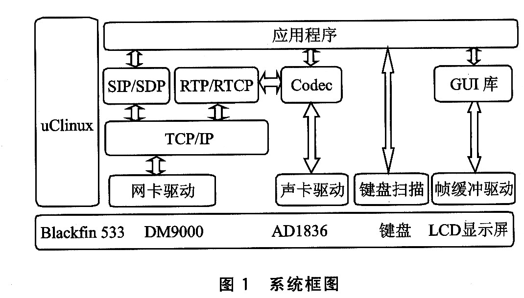 Initiation Protoc01)協議憑借相對簡單的實現模式和極強的擴展性受到了越來越多的關注。ADI公司推出的Blackfin處理器是一類專為滿足當今嵌入式音頻、視頻和通信應用的計算要求和功耗約束條件而設計的新型16/32位嵌入式處理器。該處理器基于ADI和Intel公司聯合開發(fā)的微信號架構(MSA),擁有類RISC型指令集、雙16位乘法器、雙40位邏輯運算單元(ALU)、40位桶形移位器和4個視頻運算單元(videoALUs),將信號處理功能和通用型微控制器所具有的易用性組合在了一起。這種處理特征的組合使得Blackfin處理器能夠在信號處理和控制處理應用中均有較好的表現;與此同時,該能力也簡化了硬件和軟件方面的設計。SIP類似于HTTP協議,也是一個基于文本的協議,因而易于讀取和調試。與此同時,SIP協議在制訂時就考慮到了擴充性的問題,通過增加新的消息類型、消息頭和消息體即可實現新服務。即使不能支持基于SIP的舊設備也不會妨礙這些新服務。另外,SIP的一個重要特點是,它不定義要建立的會話的類型,而只定義應該如何管理會話。有了這種靈活性,也就意味著SIP可以用于眾多應用和服務中。本文介紹了一種基于Blackfin處理器平臺的網絡電話方案?紤]未來應用的拓展需要和網絡電話的特點,選擇了Blackfin