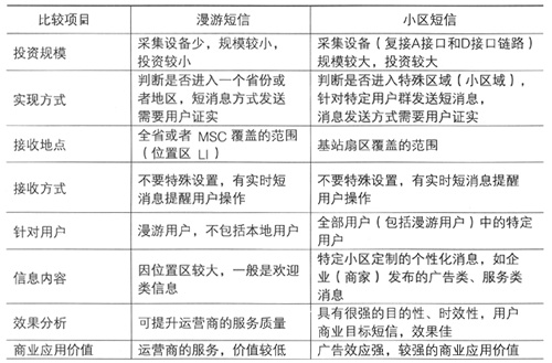 兩個(gè)系統(tǒng)最大的不同點(diǎn)是接收短信的范圍和用戶(hù)不一樣,漫游短信是針對(duì)漫游用戶(hù)在一個(gè)相對(duì)較大區(qū)域內(nèi),因此只適合運(yùn)營(yíng)商發(fā)一般性的問(wèn)候短信,提高運(yùn)營(yíng)商的服務(wù)質(zhì)量;小區(qū)短信則是在一個(gè)較小的區(qū)域內(nèi)(特定地點(diǎn)),針對(duì)特定用戶(hù)(可能包括漫游用戶(hù)),在一個(gè)特定的時(shí)間,發(fā)送特定的消息,因此這種消息具有較強(qiáng)的針對(duì)性,具有較高的商業(yè)用戶(hù)價(jià)值,可用于企業(yè)(商家)發(fā)布廣告和服務(wù)類(lèi)的信息,能夠成為一種典型的增值服務(wù)。