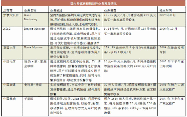 雖然數(shù)字家庭的全面實現(xiàn)還需要相當(dāng)漫長的過程,但是安防報警、視頻監(jiān)控技術(shù)將會最先在數(shù)字家庭中得到應(yīng)用。目前國內(nèi)家庭監(jiān)控市場還處于起步階段,然而3G的高帶寬將開辟家庭視頻監(jiān)控新時代,并將催生出巨大的市場商機。