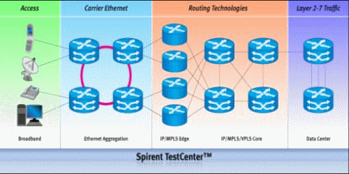 隨著語音、數(shù)據(jù)、視頻的融合,以及Everything over IP的發(fā)展,日趨復(fù)雜的業(yè)務(wù)流量及電信級別的營運要求給承載設(shè)備帶來更加嚴(yán)格的挑戰(zhàn)。豐富的功能應(yīng)用、高密度/高帶寬端口的支持、高性能轉(zhuǎn)發(fā)要求、全面的寬帶接入系統(tǒng)、靈活的業(yè)務(wù)應(yīng)用及流量管理、完備的安全防護(hù)、周全的穩(wěn)定運營及容錯備份系統(tǒng)、良好的可擴(kuò)展性等,設(shè)備廠商交付使用的不僅僅是單一的設(shè)備,而是一攬子從承載到應(yīng)用的綜合系統(tǒng)。部署實施前的測試也變得相當(dāng)重要,能否有一種完整的測試解決方案,以幫助設(shè)備制造廠商完全應(yīng)用目前的所有功能測試呢?