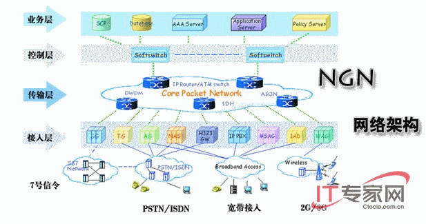 各國的運營商對下一代網(wǎng)絡(luò)NGN的發(fā)展戰(zhàn)略也進行了大規(guī)模的調(diào)整,不再只是關(guān)注軟交換和IMS,而是更多地考慮通過承載網(wǎng)和接入網(wǎng)層面的技術(shù),來構(gòu)建未來的網(wǎng)絡(luò)基礎(chǔ)設(shè)施。