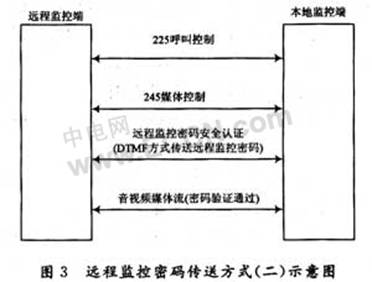 如圖3所示,在呼叫控制和媒體控制過程后傳送和驗證遠(yuǎn)程監(jiān)控密碼的方式,具體過程如下: