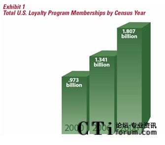 據(jù)權(quán)威的客戶忠誠(chéng)度研究機(jī)構(gòu)COLLOQUY在2009出版的一份報(bào)告,2008年底,全美客戶忠誠(chéng)度計(jì)劃的參與人次達(dá)到18.07億,平均每個(gè)美國(guó)家庭參與了14.1個(gè)忠誠(chéng)度計(jì)劃,相較2006年底的13.41億參與人次,共增了了24.73%(連續(xù)兩年環(huán)比增長(zhǎng)12%/年),而同期美國(guó)的GDP增長(zhǎng)僅為2.2%。從這一點(diǎn)上看,美國(guó)企業(yè)對(duì)忠誠(chéng)度營(yíng)銷的熱情不減,盡管忠誠(chéng)度營(yíng)銷在美國(guó)已相當(dāng)成熟,但美國(guó)企業(yè)仍然把它當(dāng)作是營(yíng)銷的重要工具。