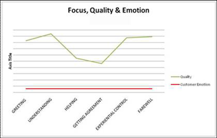 將QA流程成功“移植”到VOC中去的關(guān)鍵在于,以最快的速度度量客戶在呼叫各階段的“情感水平”。記分系統(tǒng)必須夠簡(jiǎn)單,如從1——5,1代表非常生氣/不高興,5代表非常高興/愉快。由QA分析師來評(píng)判客戶在呼叫中每個(gè)階段的情感。由于度量標(biāo)準(zhǔn)是主觀的,因此實(shí)際分?jǐn)?shù)并不很重要。更進(jìn)一步,客戶也可以被邀進(jìn)來參加呼叫質(zhì)量調(diào)研。調(diào)研結(jié)果再結(jié)合呼叫時(shí)的客戶情感來分析。