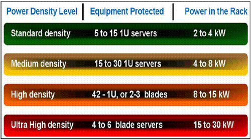 當企業(yè)部署刀片式服務器來宿主其虛擬服務器時尤其如此。刀片式服務器采用多個即插即用型處理裝置,它們共享公共的電氣系統(tǒng)、電源、風扇、電纜和存儲器。這樣的安排節(jié)省了數(shù)據(jù)中心的占地面積,簡化了硬件管理,并提高了IT靈活性。然而,這同時也大大增加了運算密度。結果,刀片式服務器產(chǎn)生大量的熱,從根本提高了機柜級供電要求。確實,一個典型的傳統(tǒng)服務器機柜可能需要4至6 kW電力,而一個典型的布滿刀片式機架的機柜則可能需要高達30 kW的電力,遠遠超過許多電源和冷卻系統(tǒng)的處理能力。